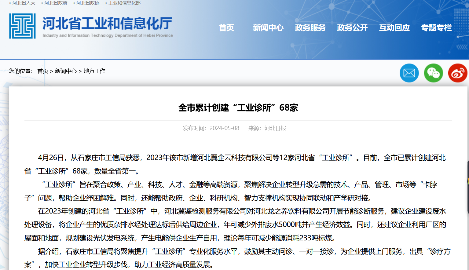 河北冀鑒檢測(cè)服務(wù)有限公司工業(yè)診所工作獲得上級(jí)表?yè)P(yáng)工業(yè)診所”旨在聚合政策、產(chǎn)業(yè)、科技、人才、金融等高端資源,聚焦解決企業(yè)轉(zhuǎn)型升級(jí)急需的技術(shù)、產(chǎn)品、管理、市場(chǎng)等“卡脖子”問(wèn)題,幫助企業(yè)紓困解難。同時(shí),還能幫助政府、企業(yè)、科研機(jī)構(gòu)、智力支撐機(jī)構(gòu)實(shí)現(xiàn)協(xié)同聯(lián)動(dòng)和產(chǎn)學(xué)研對(duì)接。 在2023年創(chuàng)建的河北省“工業(yè)診所”中,河北冀鑒檢測(cè)服務(wù)有限公司對(duì)河北龍之養(yǎng)飲料有限公司開展節(jié)能診斷服務(wù),建議企業(yè)建設(shè)廢水處理設(shè)備,將企業(yè)產(chǎn)生的優(yōu)質(zhì)雜排水經(jīng)處理達(dá)標(biāo)后供給周邊企業(yè),查看詳情>>
