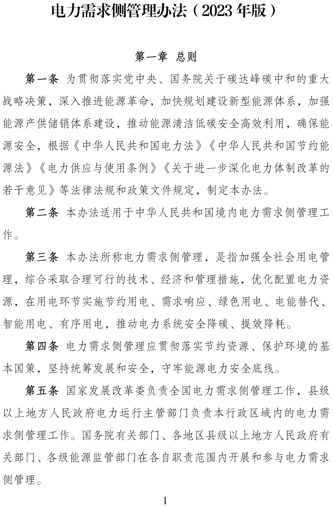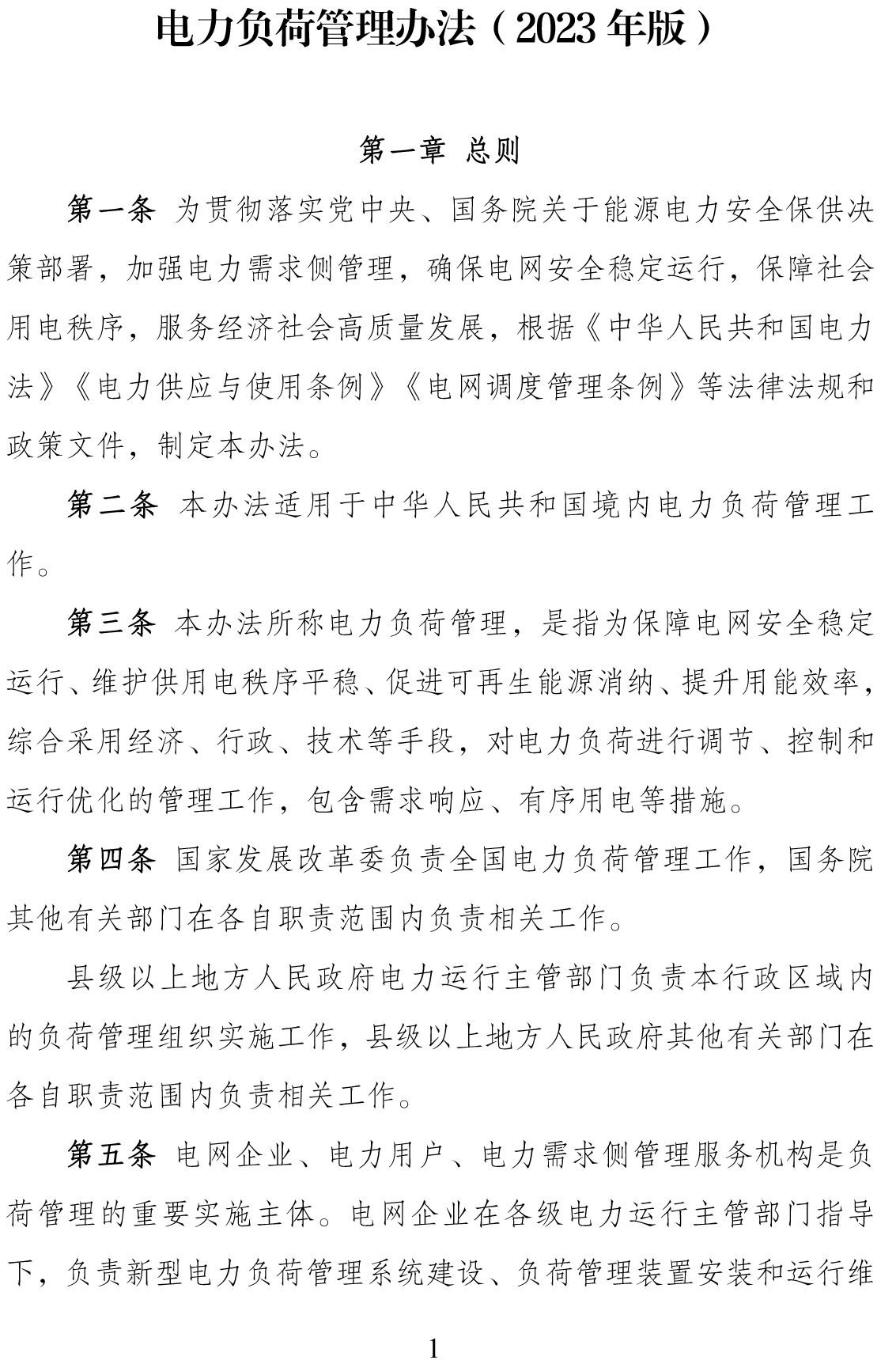 國家發(fā)展改革委國家能源局關(guān)于印發(fā)《電力負(fù)荷管理辦法(2023年版)》的通知發(fā)改運(yùn)行規(guī)〔2023〕1261號(hào)各省、自治區(qū)、直轄市發(fā)展改革委、能源局,北京市城市管理委員會(huì),天津市工信局,上海市、重慶市經(jīng)信委,遼寧省、四川省、甘肅省工信廳,國家電網(wǎng)有限公司、中國南方電網(wǎng)有限責(zé)任公司,有關(guān)中央發(fā)電企業(yè): 為貫徹落實(shí)黨的二十大精神,加快規(guī)劃建設(shè)新型能源體系,深化電力需求側(cè)管理,確保電網(wǎng)安全穩(wěn)定運(yùn)行,保障社會(huì)用電秩序,我們對(duì)2011年發(fā)布的《有序用電管理辦法》進(jìn)行了修訂,形成了《查看詳情>>
