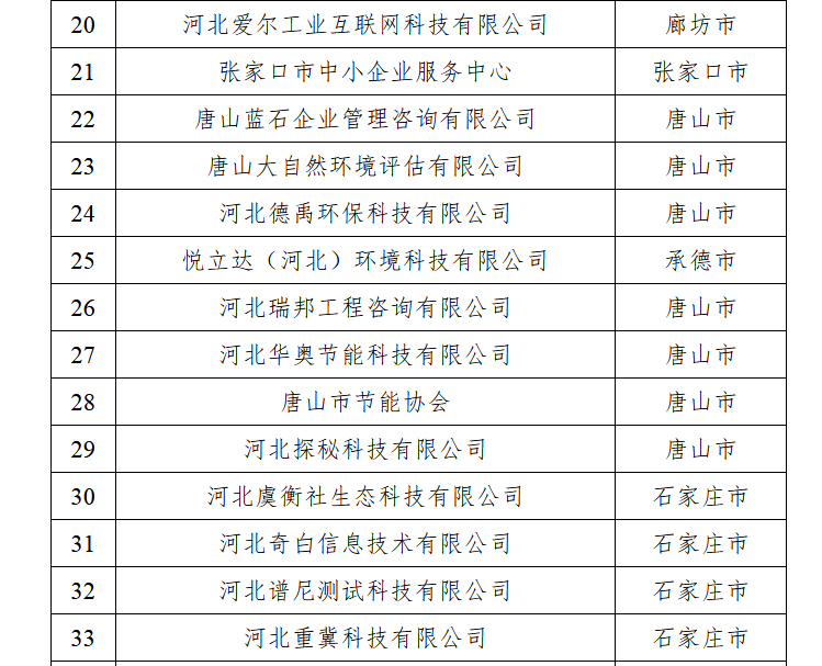 附件:2023年河北省工業(yè)節(jié)能診斷服務(wù)機(jī)構(gòu)推薦名單
